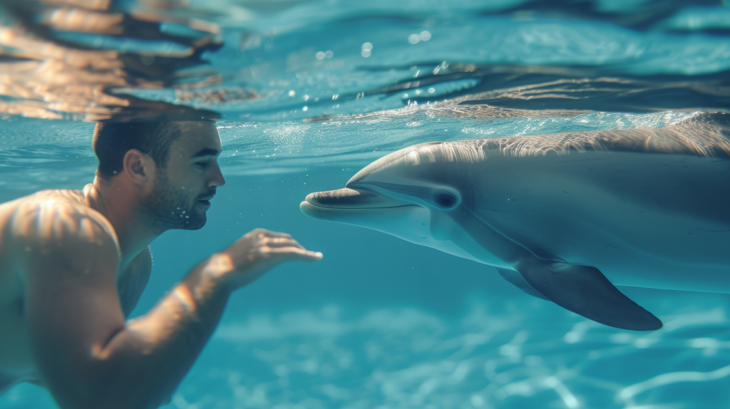 An incredibly unique experience. Grab a mask and swim with friendly dolphins.