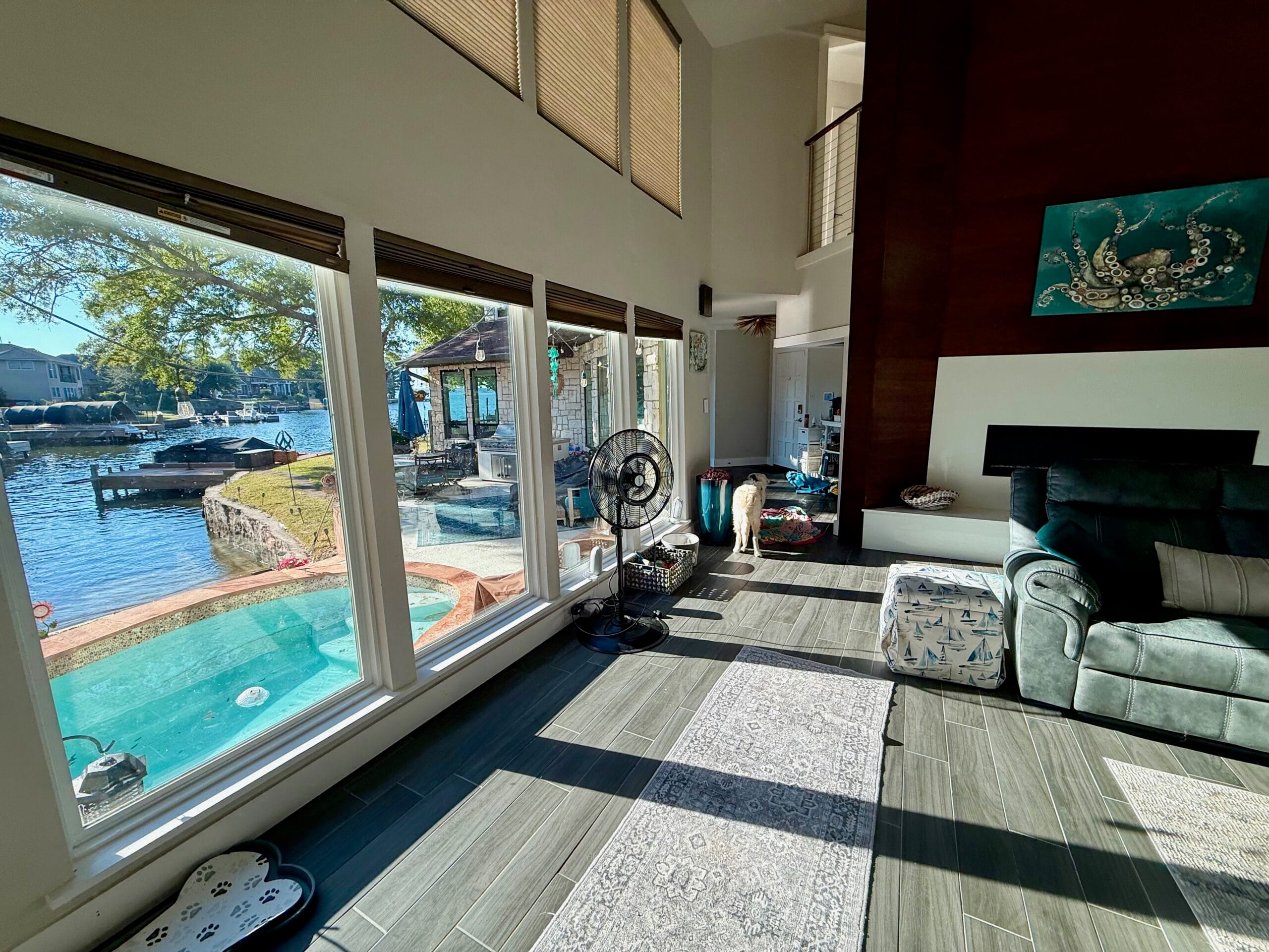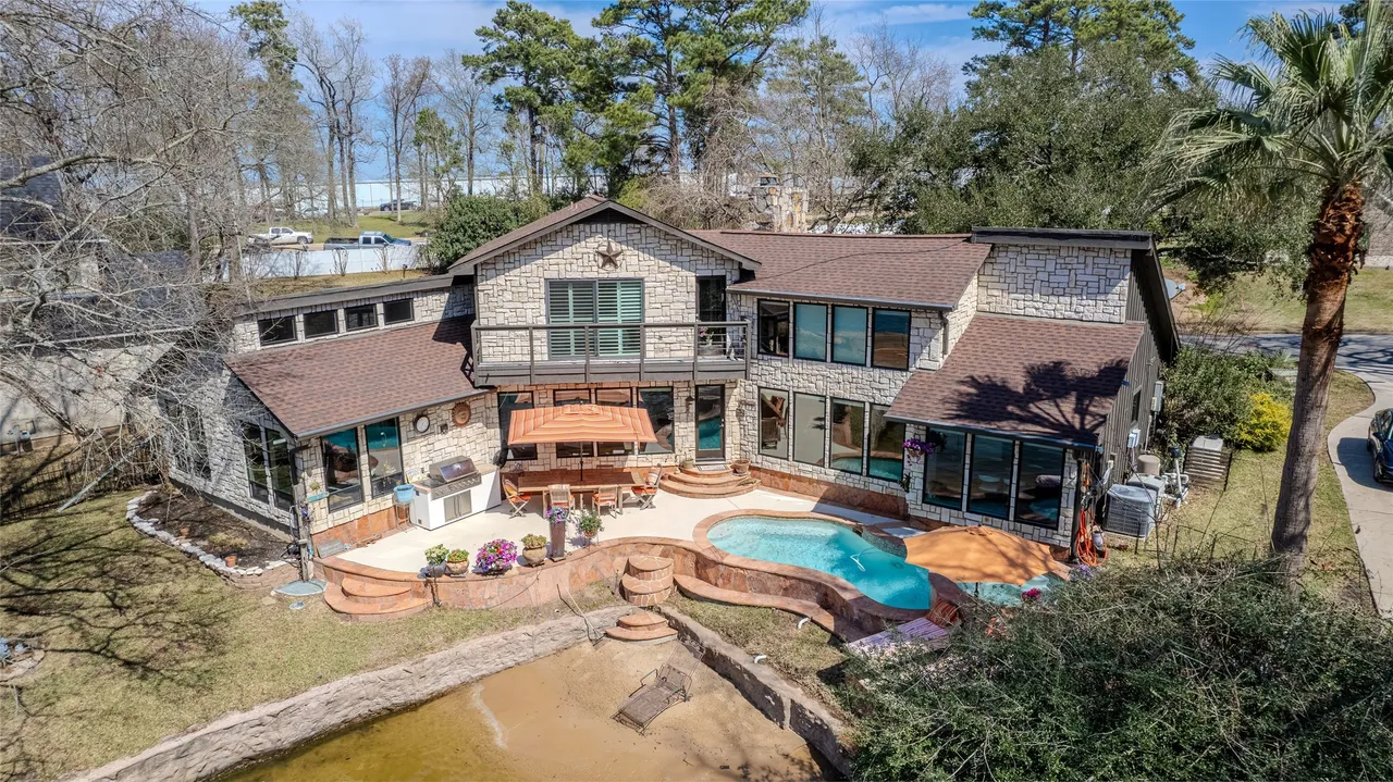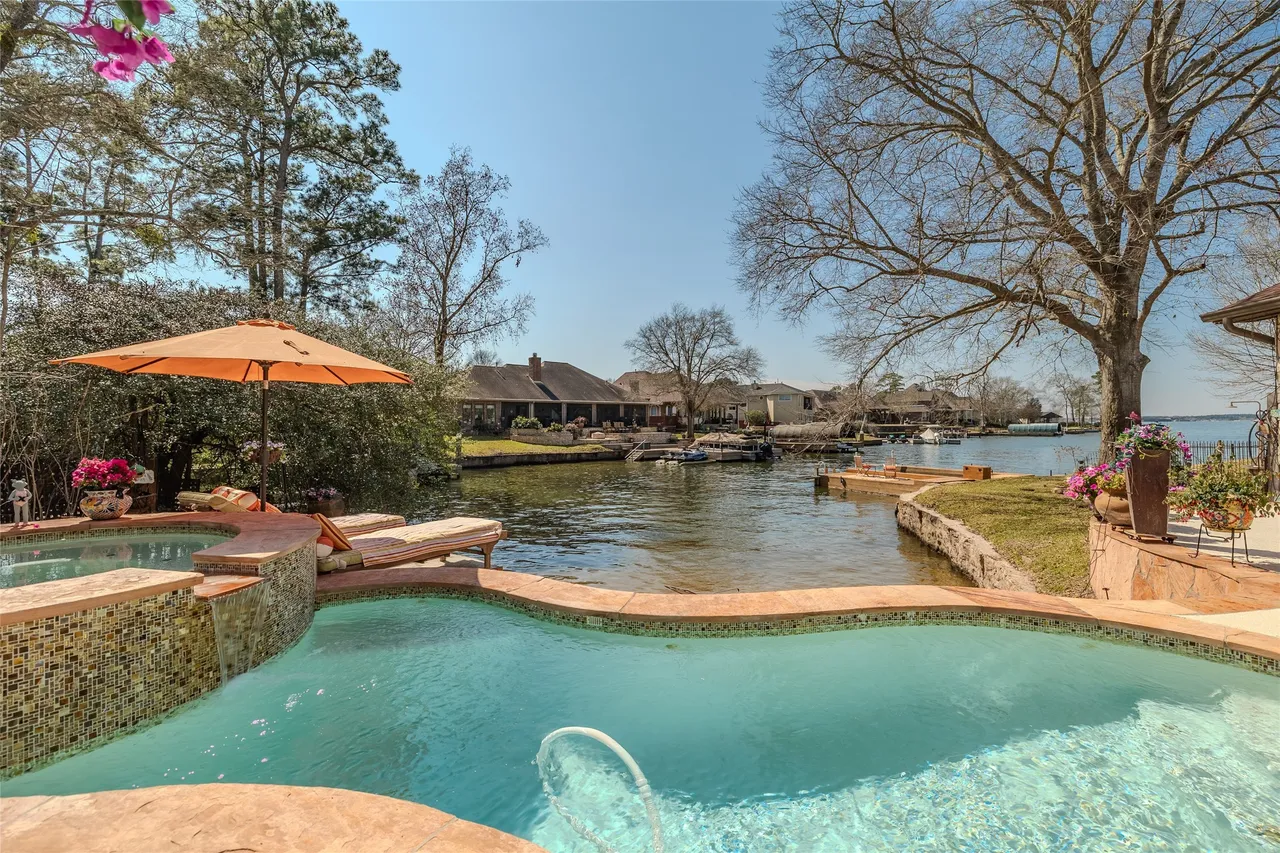 WOW! FEEL LIKE YOU ARE ON VACATION EVERY DAY! This home will impress you with its uniqueness, beauty, and array of amenities! It’s in a wonderful LAKEFRONT location with the protection of a cove, but an open view down the cove and nearness to open water! You have multiple ways to get your boat in and out nearby for added convenience. PLUS YOUR OWN BEACH! Few lake homes on Lake Conroe can enjoy a private beach. The private POOL adds another awesome feature. Sit in the pool and take in the views after spending a day on the lake. This home also has a spacious backyard with mature trees hovering over your private boat dock. You can be on the lake in minutes. The backyard also offers plenty of room for pets. Inside is GORGEOUS! You’ll love the contemporary/modern feel of the decor and finishes. Wide open spaces and LOTS OF WINDOWS let in natural light and great lake views throughout the home. The generator and beautiful landscaping are cherries on top! Too much to brag on! Come see!